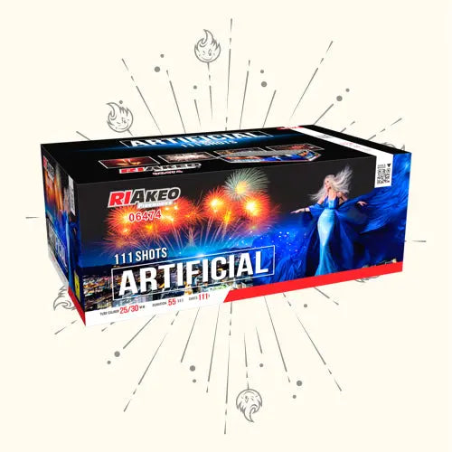 RIAKEO Artificial - 111 Schuss High-End Fächer-Verbundfeuerwerk in Fan, V, Z-Shape geschossen.