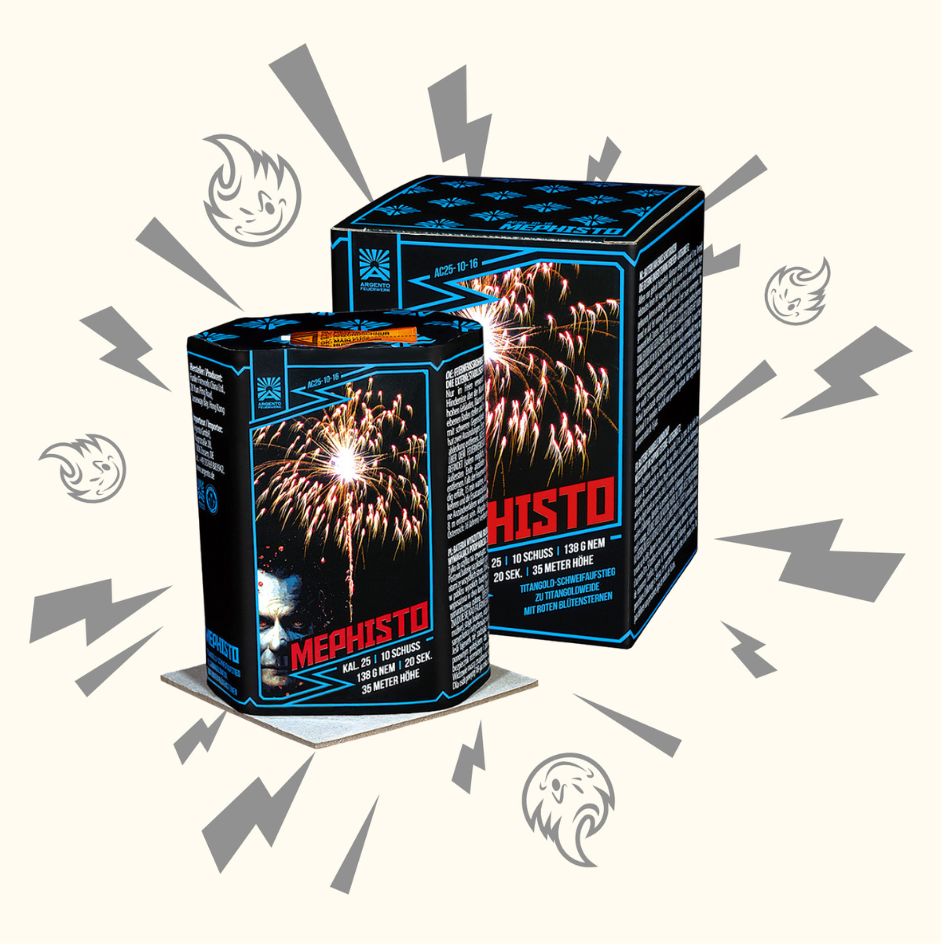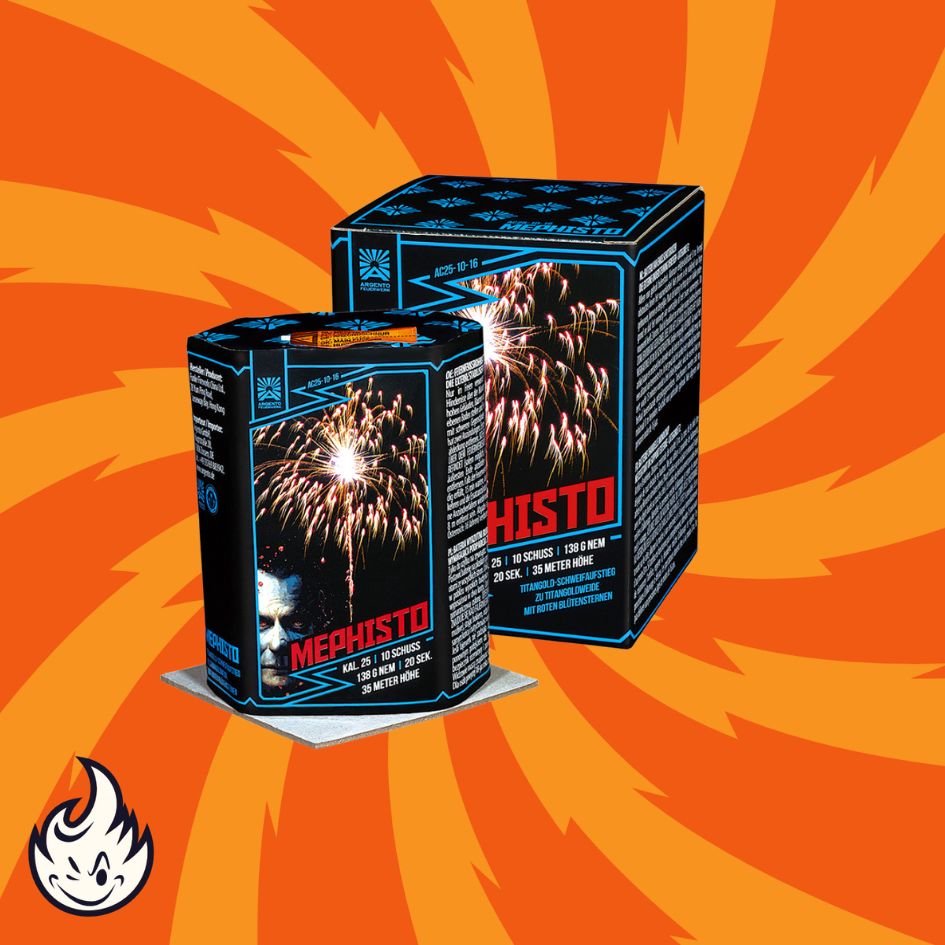 Argento Mephisto 10 Schuss Feuerwerksbatterie 25 mm mit riesigen Titangoldweiden