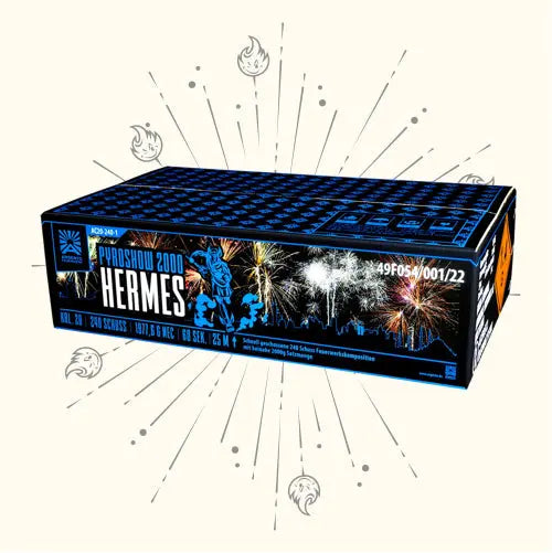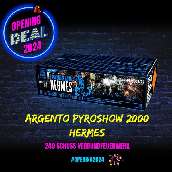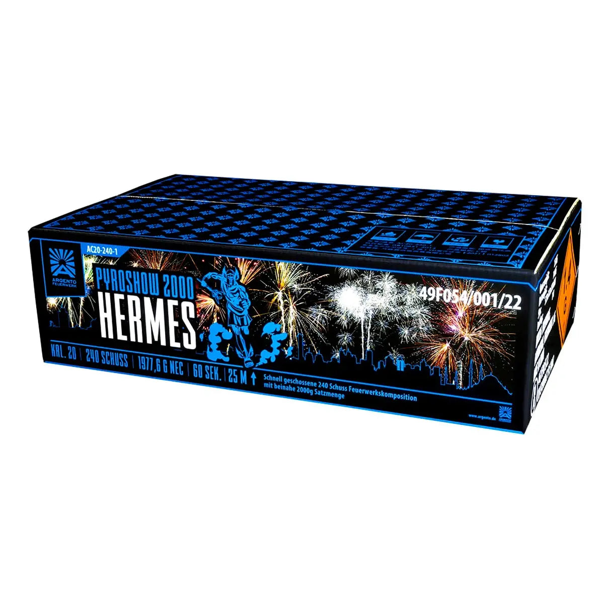 Argento Pyroshow 2000 Hermes - 240 Schuss Verbundfeuerwerk mit verschiedenen, schnellen Schusssequenzen und Kaliber 20 mm. Brachiale Showbox für dein persönliches Event!