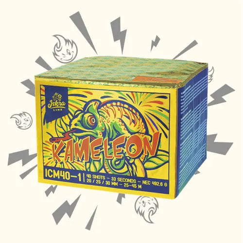 Iskra Kameleon - 40 Schuss Feuerwerksbatterie mit abwechslungsreicher Performance und Mix-Kalibern