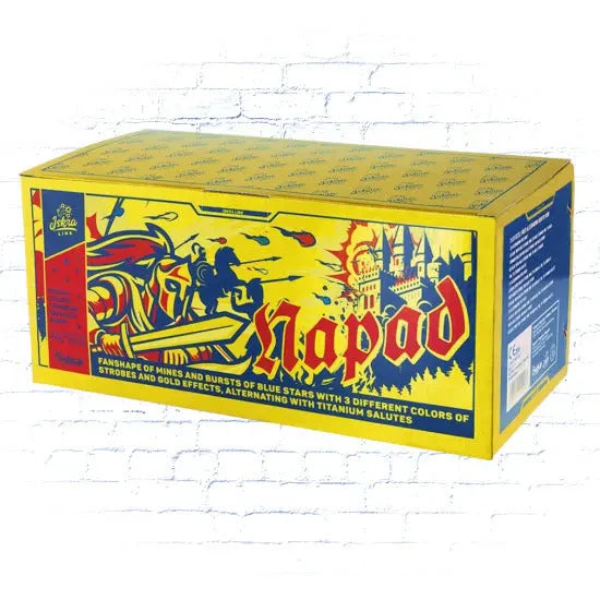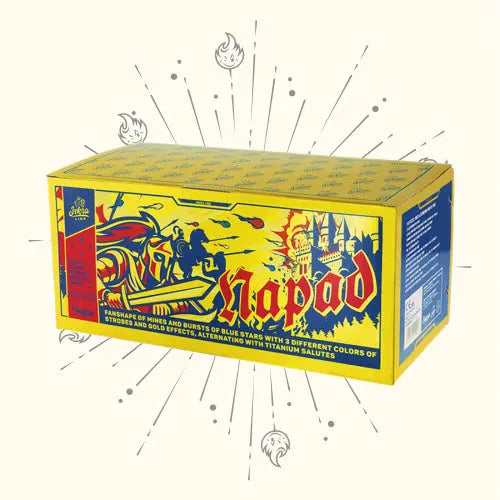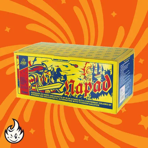 Iskra Napad - 54 Schuss Verbundfeuerwerk in Fan-Shape geschossen mit massiven Blinkern und Feuertöpfen zu BKS Ti-Salutschlägen