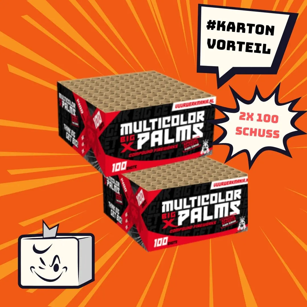 KARTONVORTEIL 📦 GEISHA 'Big X' Multicolor Palms - 100 Schuss Verbundfeuerwerk - 2 Stk - VE | Special zum Bestpreis