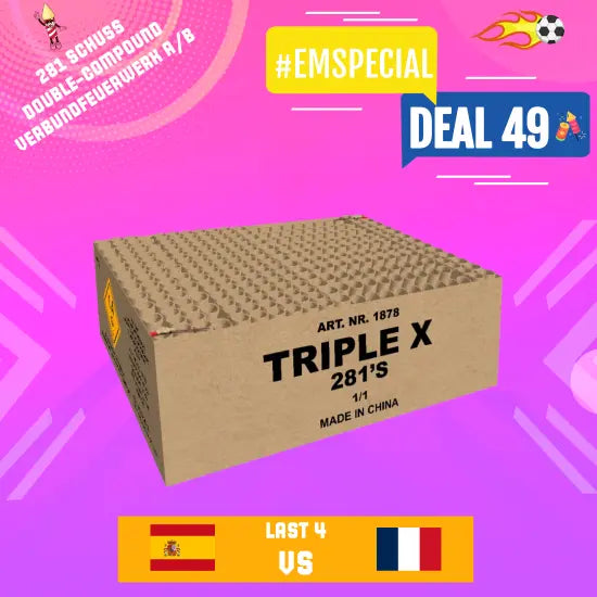 Magnum Triple X - 281 Schuss High End Doppel-verbundfeuerwerk. Gestalte dein persönliches Highlight! Diese Showbox besteht aus 2 Teilen welche verleitet oder einzeln geschossen werden können