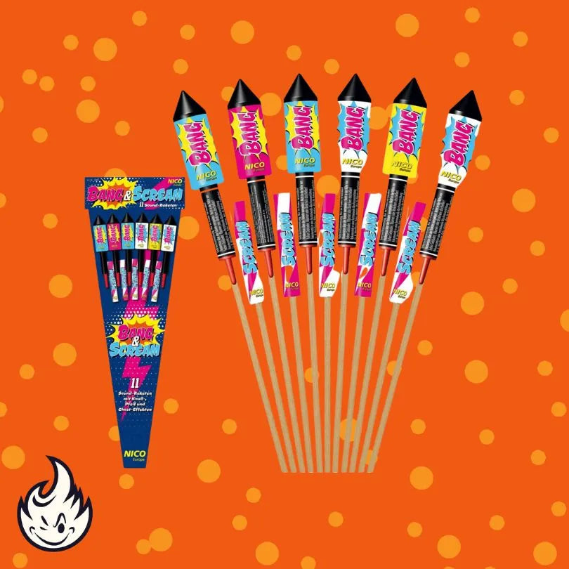 Nico Bang & Scream – 11er Pack Sound-Raketensortiment mit Knall -, Pfeif- und Ghost-Effekten
