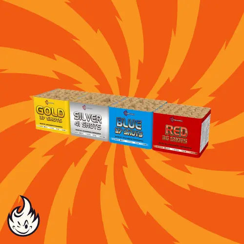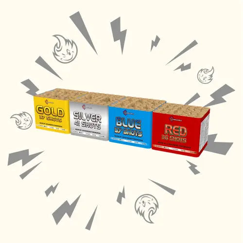 J-FIREWORKS Streetbox Gold Silver Red Blue - 4er Feuerwerksbatterien-Set 151 Schuss