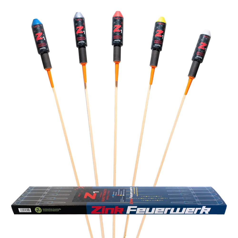 Zink Z1 Bukettraketen 10er Pack - mit 20g NEM pro Rakete, satten Buketts und bis zu 50m Steighöhe